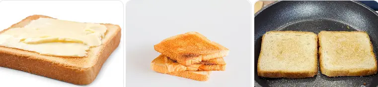 - सबसे पहले ब्रेड को टोस्टर या तवे पर सुनहरा और क्रिस्पी होने तक सेंक लें।