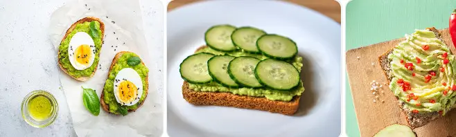 Avocado Toast एक मॉडर्न और हेल्दी ब्रेकफास्ट है जिसमें ब्रेड के ऊपर मैश किया हुआ एवोकाडो लगाया जाता है और ऊपर से अलग-अलग टॉपिंग्स डाली जाती हैं।