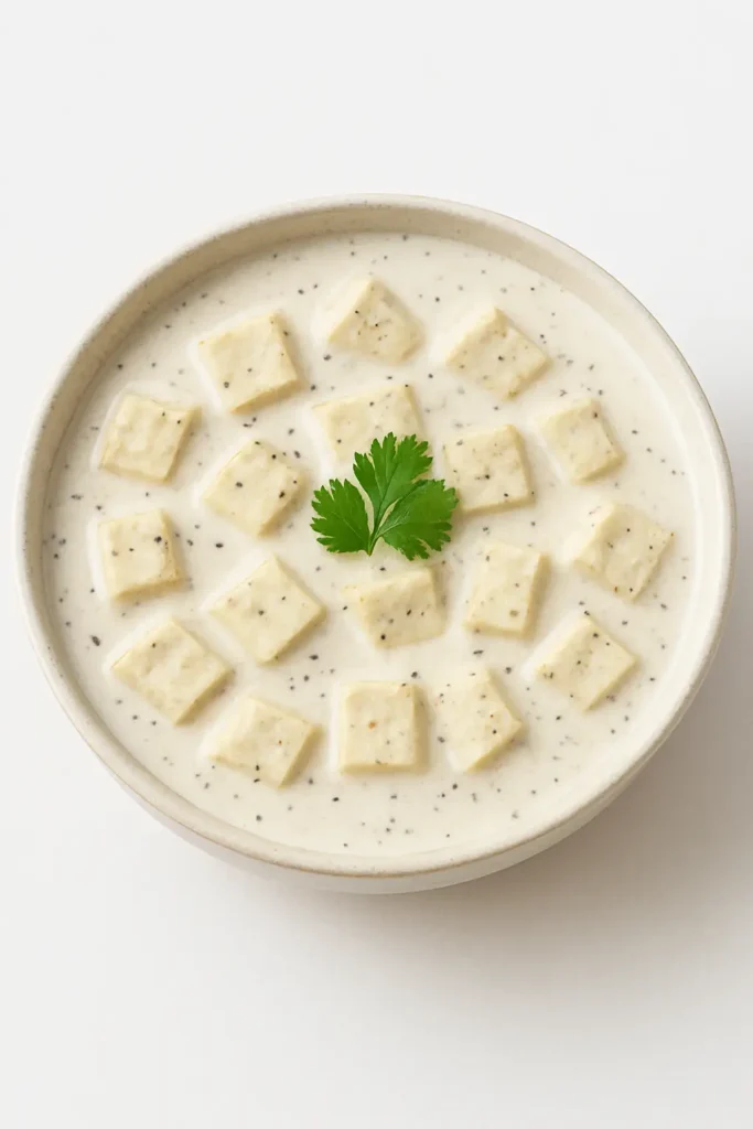 *यह डिश सफ़ेद और क्रीमी रहती है, इसलिए इस मे हल्दी या लाल मिर्च पाउडर न डाले। केवल काली मिर्च ही मुखय मसाला है। ताजा कटी हुई काली मिर्च का इस्तेमाल करे।